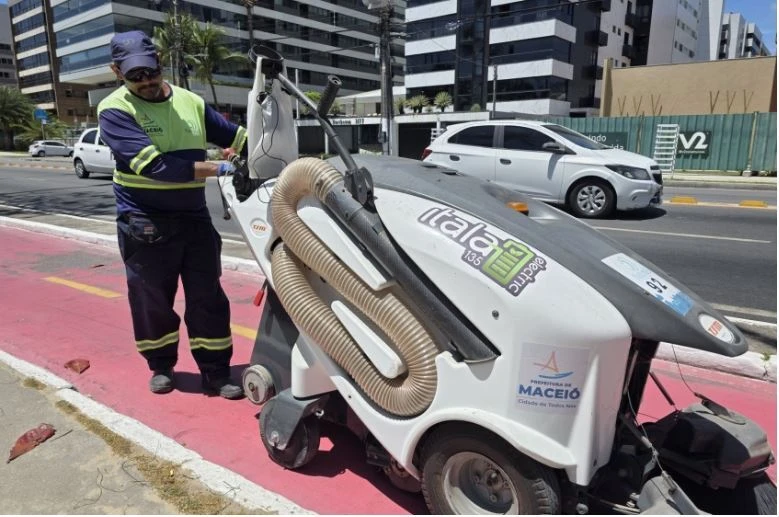 Varredura elétrica atua na limpeza de diversas superfícies. Foto: Beto Macário/ Secom Maceió