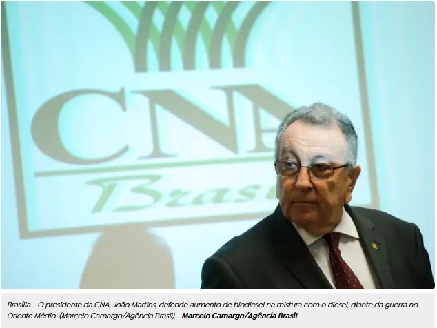 A Confederação da Agricultura e Pecuária do Brasil (CNA) pediu ao governo federal o aumento da mistura obrigatória de biodiesel ao óleo diesel no país de 15% para 17%. A entidade afirma que a medida ajudaria a reduzir impactos da alta do petróleo provocada pela escalada do conflito no Oriente Médio.