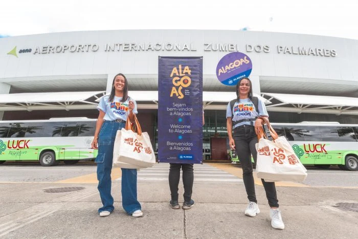 Em uma parceria público-privada inédita entre o Governo de Alagoas e as organizadoras dos eventos de final de ano no estado e a Azul Viagens, chegou nesta última terça-feira (27), no Aeroporto Internacional Zumbi dos Palmares, um voo exclusivo para influenciadores e convidados rumo aos maiores réveillons do país no Destino Alagoas. Com origem no Aeroporto de Guarulhos, em São Paulo, o voo da aeronave da Azul Linhas Aéreas trouxe cerca de 170 passageiros para os eventos do Café de La Musique Maceió, Réveillon Celebration, Réveillon Arcanjos, Réveillon Mil Sorrisos e Réveillon dos Milagres.