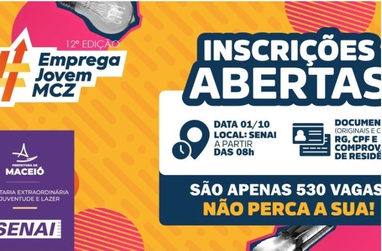 A Prefeitura de Maceió alcançou um novo marco com a 12ª edição do programa Emprega Jovem, desenvolvido pela Secretaria Extraordinária da Juventude e Lazer (SEJL). Os interessados devem comparecer, nesta quarta-feira (1°), a partir das 8h, no Senai Poço. São oferecidas 530 vagas. É preciso estar em mãos com o RG, CPF, comprovante de residência, originais e cópia.