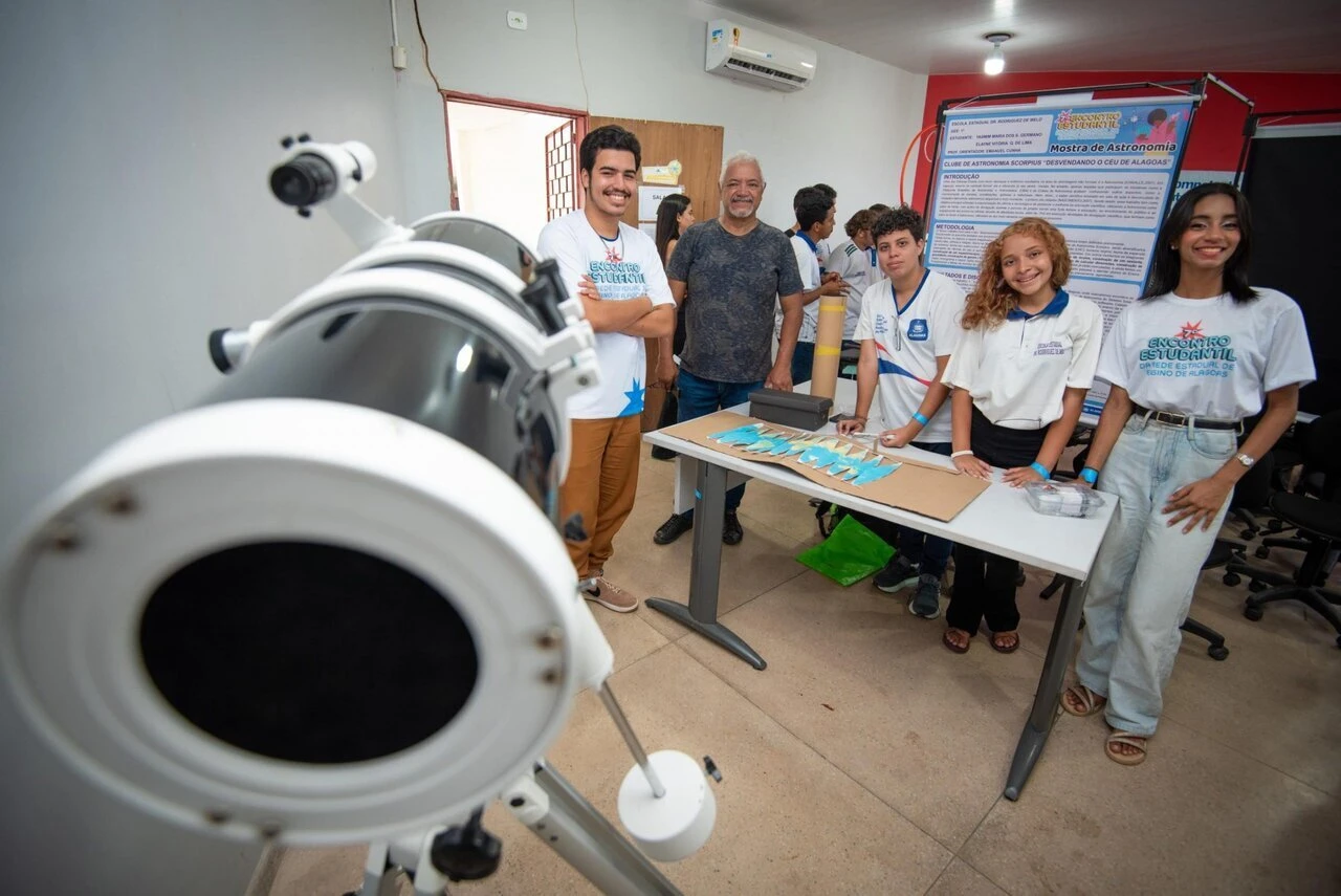 Dentre as escolas expositoras da Mostra de Astronomia estava a Rodriguez de Melo, de Maceió. Por meio do clube de astronomia Scorpius e o projeto “Desvendando o Céu da Lagoa”, coordenado pelo professor Emanuel Cunha, a escola já foi destaque no programa de bolsas de iniciação científica Pibic Jr e premiada na edição 2024 da Semana Interinstitucional de Pesquisa, Tecnologia e Inovação na Educação Básica, evento promovido pela Universidade Federal de Alagoas (Ufal).