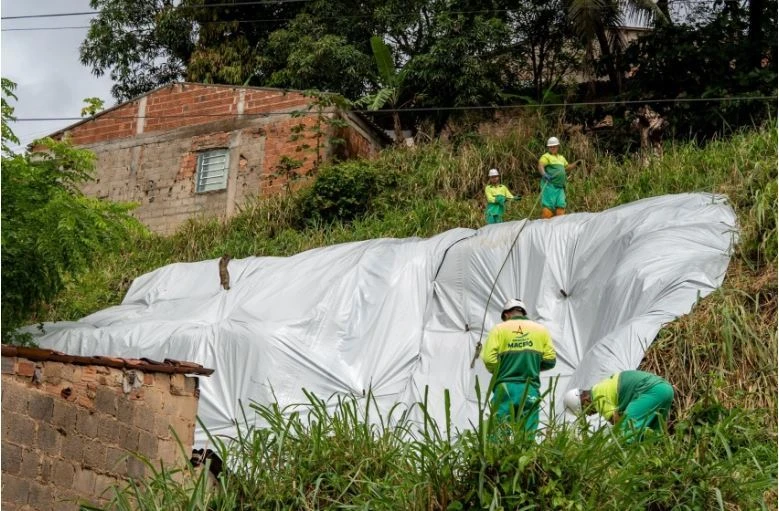 A ação consiste na cobertura de encostas vulneráveis com lonas plásticas especiais, que reduzem a infiltração e ajudam a estabilizar o terreno. A operação conta com equipes em campo para identificar trechos críticos, realizar o nivelamento do terreno e fixar as lonas de forma segura. O trabalho é executado pela Defesa Civil com apoio da Autarquia de Limpeza Urbana de Maceió(Alurb), que disponibiliza equipamentos e reforço de pessoal para agilizar as intervenções.