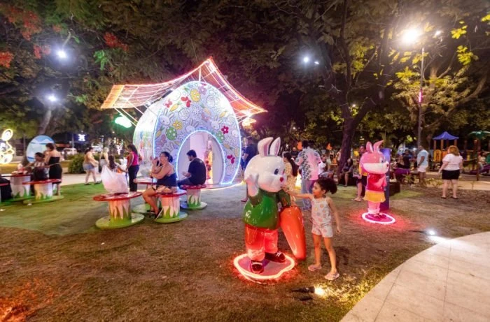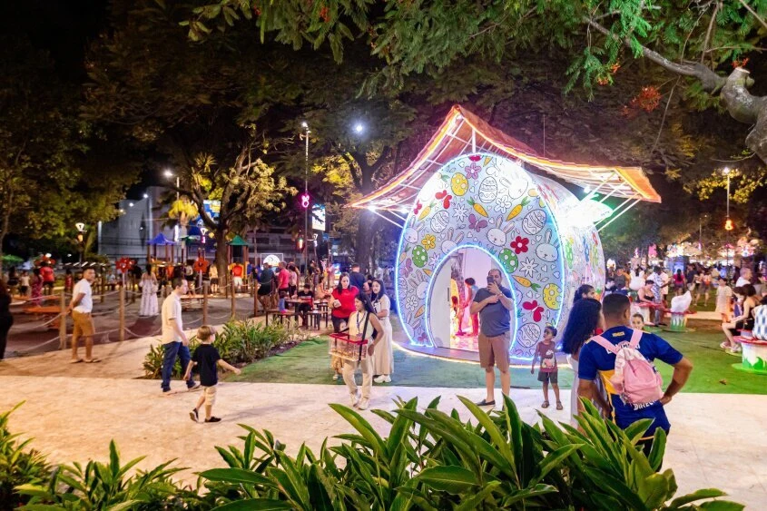 Diariamente, a Vila da Páscoa do Parque do Centenário atrai famílias inteiras que desfrutam de horas de lazer e encantamento. Foto: Itawi Albuquerque