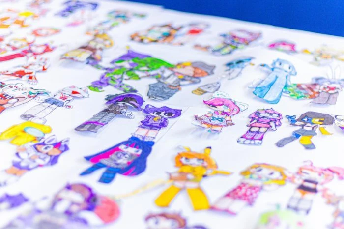Com investimento familiar na compra de materiais, Maria Eduarda cria figuras com massa de modelar e biscuit. Com papel e a massinha, a estudante também constrói bonecos articulados, com movimento de membros e olhos e ainda faz pequenas miniaturas usando materiais como isopor e plástico