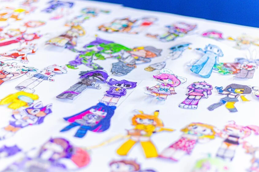 Duda, como é chamada por todos, é um talento nato. É assim que Kledja Torres, professora da Sala de Recursos, descreve a arte da aluna, de 12 anos. Além de altas habilidades, ela também possui Transtorno do Espectro Autista (TEA). O apoio pedagógico proporcionado na Sala de Recursos faz com que a estudante expresse suas habilidades artísticas com um desenvolvimento pleno.