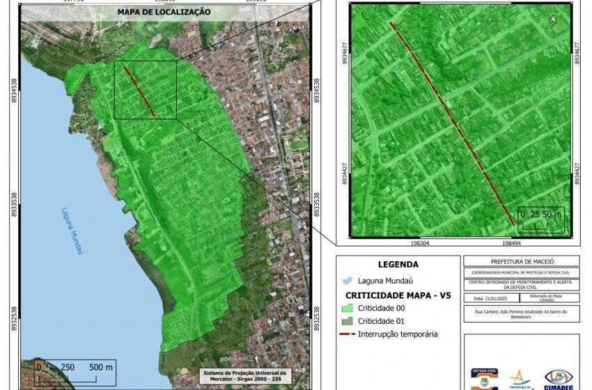 Rua será liberada após conclusão dos trabalhos, prevista para o dia 28 de janeiro A Defesa Civil de Maceió vai interditar, nesta quarta-feira…