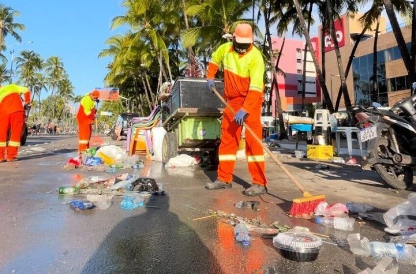 Equipes de limpeza fizeram força-tarefa para recolher resíduos deixados na areia da orla marítima Após a queima de fogos, para celebrar a …