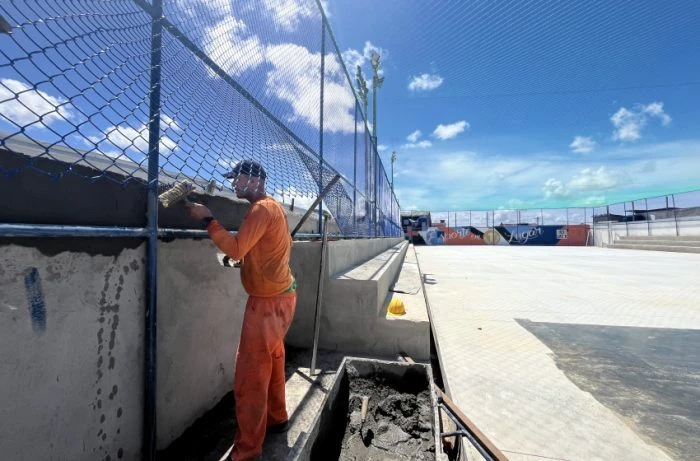As intervenções incluem a instalação de duas arquibancadas, vestiários masculino e feminino, uma rampa de acessibilidade e um banheiro adaptado para pessoas com deficiência, além do novo sistema de drenagem para resolver o problema do acúmulo de água no piso da quadra.