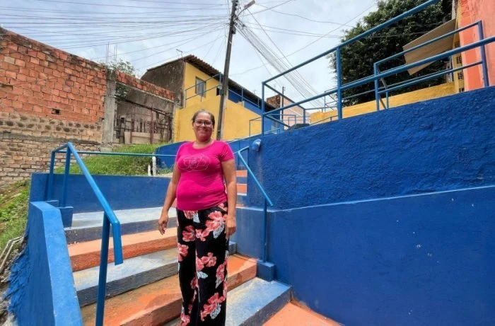 Maria Quitéria vive na localidade há 27 anos e destacou as mudanças na região. “Melhorou uns 200% depois da escada. Agora, todo mundo aqui tá mais feliz, sabe? E quando chove, a gente não se preocupa mais, porque tem aquelas valas que levam a água embora e nossas casas ficam protegidas”, disse.