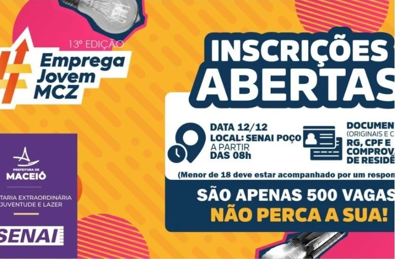 A Prefeitura de Maceió, em parceria com o Senai, abre nesta sexta-feira (12) as inscrições para a 13ª edição do Programa Emprega Jovem. A iniciativa é coordenada pela Secretaria Extraordinária da Juventude e Lazer (SEJL) e oferece 500 vagas em cursos gratuitos voltados à formação e qualificação profissional de jovens e adultos maceioenses, ampliando as oportunidades de inserção no mercado de trabalho.