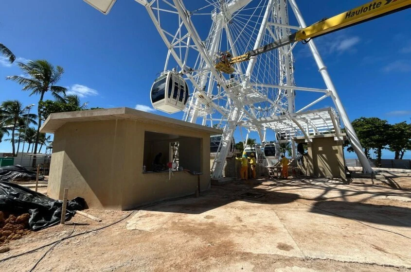Roda-gigante terá 20 cabines equipadas com ar-condicionado, wi-fi e circuito interno de TV. Foto: Samara Emanuelle/ Ascom Seminfra