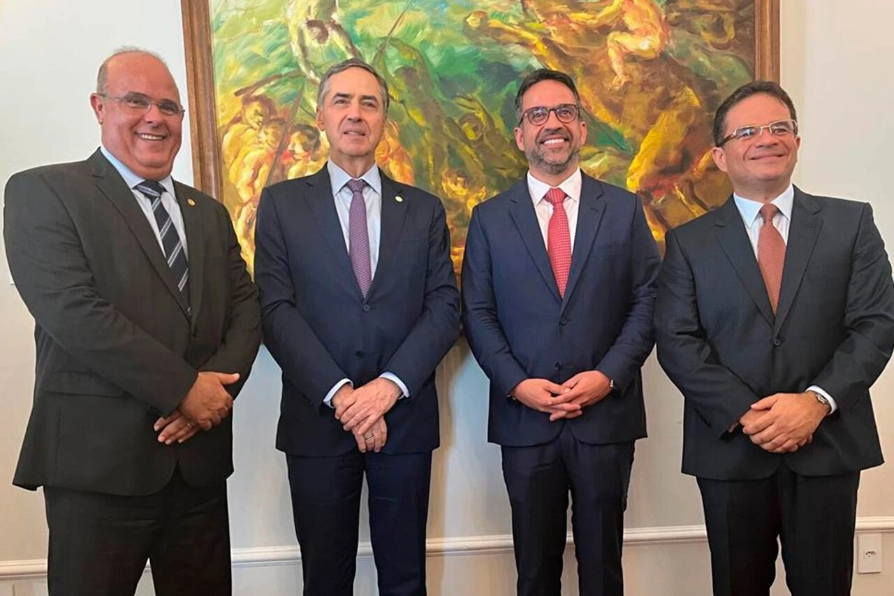 Ministro Luís Roberto Barroso reuniu-se com chefes dos poderes Judiciário, Executivo e Legislativo de Alagoas; agenda com presidente do STF segue durante a tarde