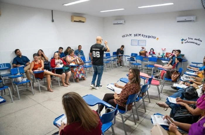 Servidores da Secretaria Municipal de Educação (Semed) participaram, na noite da última quinta-feira (10), da aula inaugural do primeiro curso de Inglês gratuito, voltado aos profissionais da rede pública de ensino de Maceió. A primeira aula foi ministrada na Escola Municipal Cícera Lucimar de Sena Santos, no bairro Poço.