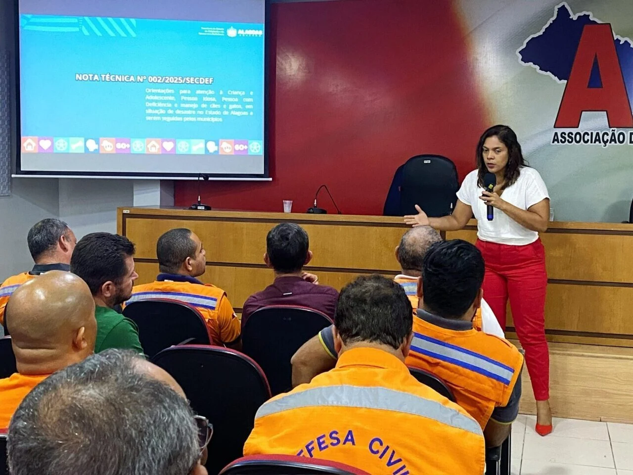A secretária de Estado da Cidadania e da Pessoa com Deficiência (Secdef), Arabella Mendonça, apresentou nesta quinta-feira (20) aos agentes da Defesa Civil de cidades alagoanas uma Nota Técnica com o objetivo de orientar os municípios para a proteção de grupos vulneráveis em situações de desastre. A reunião foi realizada no auditório da Associação dos Municípios Alagoano (AMA), em Maceió.
