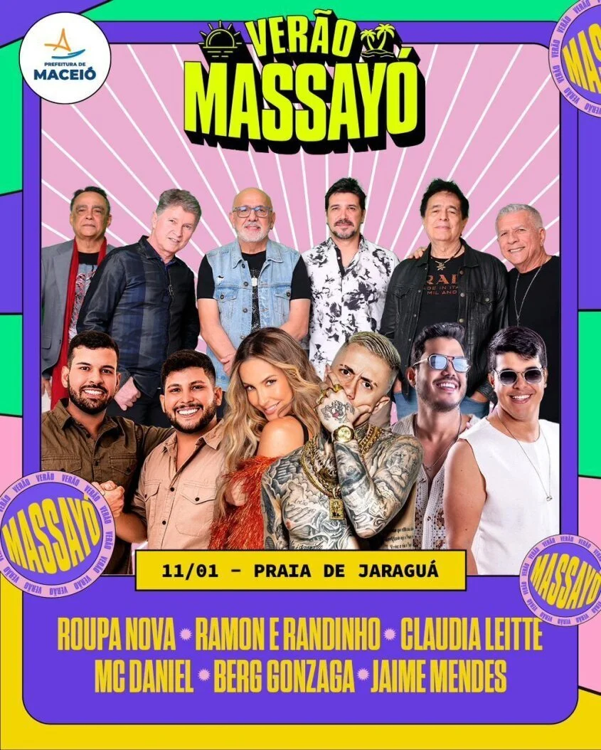 O Verão Massayó segue com uma vasta programação neste sábado (11). A partir das 15h, na praia da Avenida, no bairro histórico de Jaraguá, maceioenses e turistas vão curtir os shows dos artistas locais e nacionais e apreciar um dos cartões postais da cidade com um belíssimo pôr do sol.