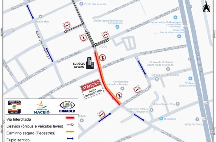 Nesta segunda-feira (2), um trecho da rua Professor José da Silveira Camerino, no Pinheiro, será interditado para demolição preventiva de um edifício que está dentro da área 00 (realocação) do Mapa de Linhas de Ações Prioritárias (v5), que delimita os bairros afetados pelo afundamento do solo.