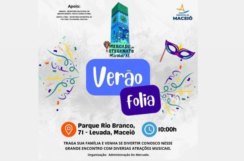 Com muita alegria, animação, artesanato e cultura, a Secretaria Municipal de Abastecimento, Pesca e Agricultura (Semapa) vai realizar, no próximo sábado (13), às 10h, o Verão Folia, no Mercado do Artesanato, na Levada.