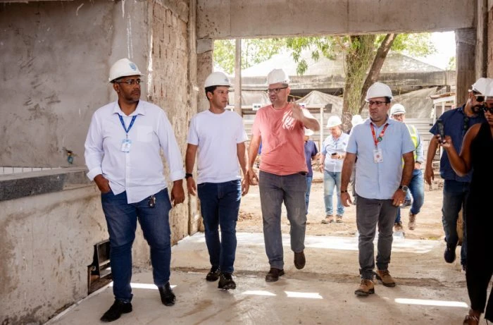 Rodrigo Cunha acompanha obras do mercado do Biu. Foto: Felipe Sóstenes/ Ascom GVP